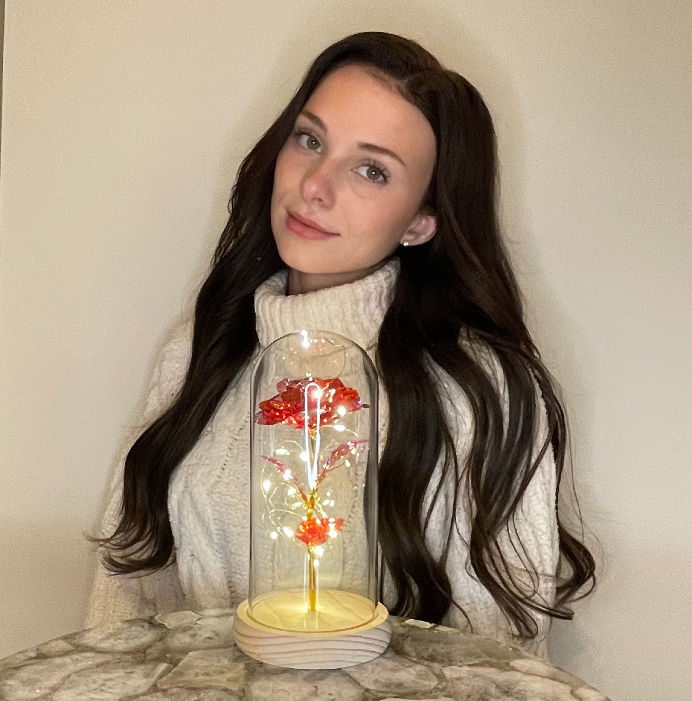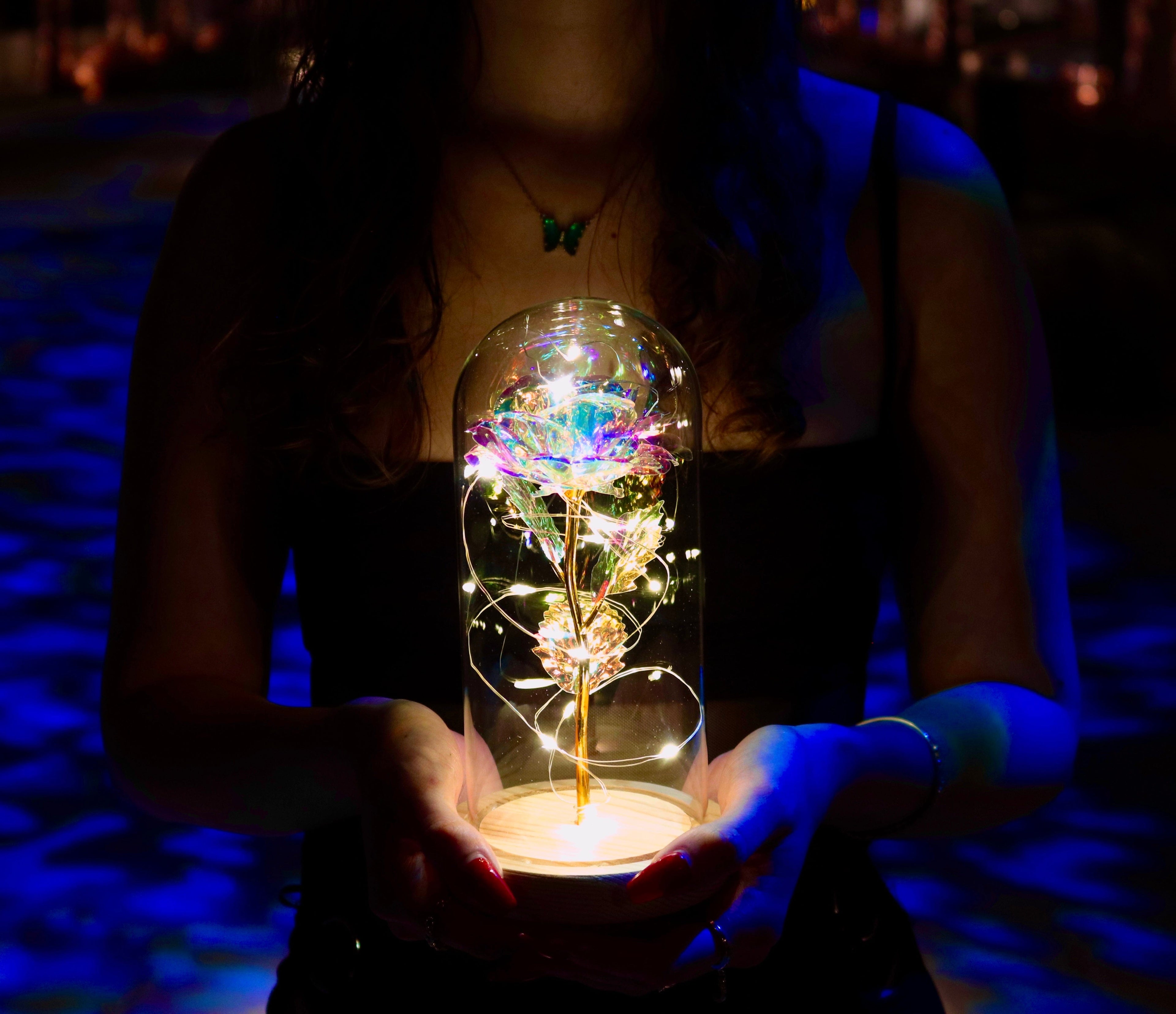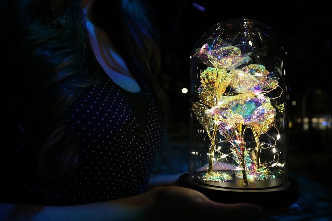 Surprise her with a rose box that rotates to reveal an engraved necklace that speaks form the heart